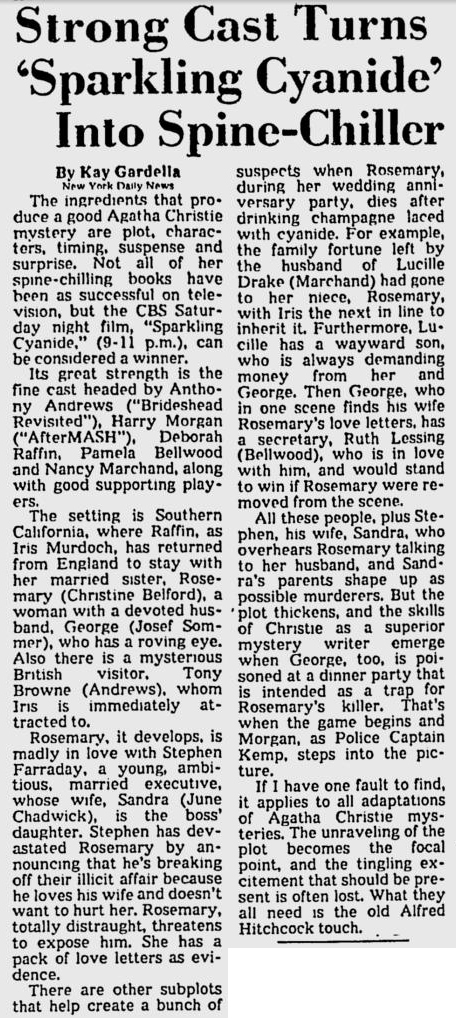 Deborah Raffin is second-billed in Killing at Hell's Gate though the actress has less time onscreen than one might expect. She does get a few good scenes and some nice close-ups, however, which really add something to the proceedings. It's a pretty good TV movie, predictable for sure, but nonetheless quite watchable. A number of familiar faces are featured, including Paul Burke, Lee Purcell, George DiCenzo, Brion James and Joel Higgins (who Deborah Raffin would re-team with for the 1984 TV movie Threesome).